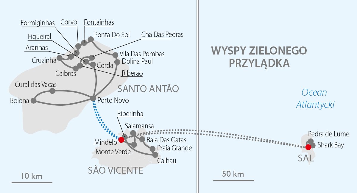 Dobry pomysł na wakacje! Wycieczka na Wyspy Zielonego Przylądka pozwala poznać je od strony przyrody, podziwiać miejsca, których nie zobaczy się z auta, poczuć je i pokochać. Przepiękne trasy trekkingowe, niezwykłe krajobrazy i pełna egzotyka. Smakuj lokalne potrawy, poznaj ukryte skarby Cabo Vede i ciesz się słońcem. Sal, São Vicente i Santo Antão czekają na Ciebie! Trasa przejazdu: ok. 750 km.